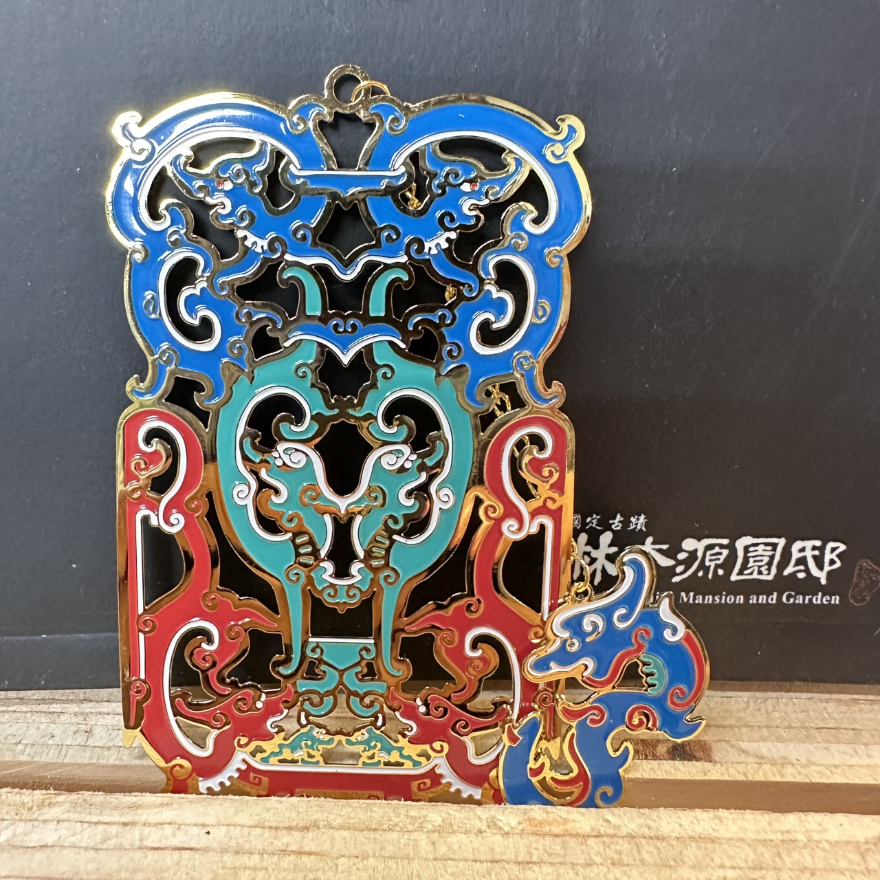 螭虎團爐黃銅書籤採用來青閣之開軒一笑亭太師壁上螭虎團爐圖案做設計