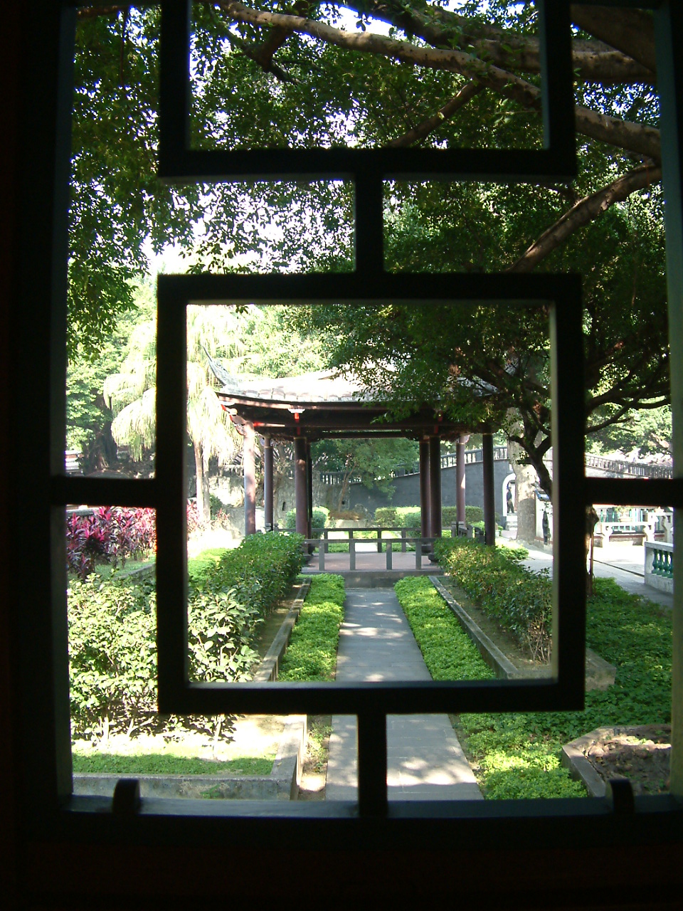 有時從建築物的窗框中,剛好發現一幅構圖絕佳的圖畫風景,這就是框景的技巧,利用建築物的門窗或兩柱之間形成的框架,將景致收入其中,如同欣賞一幅畫。